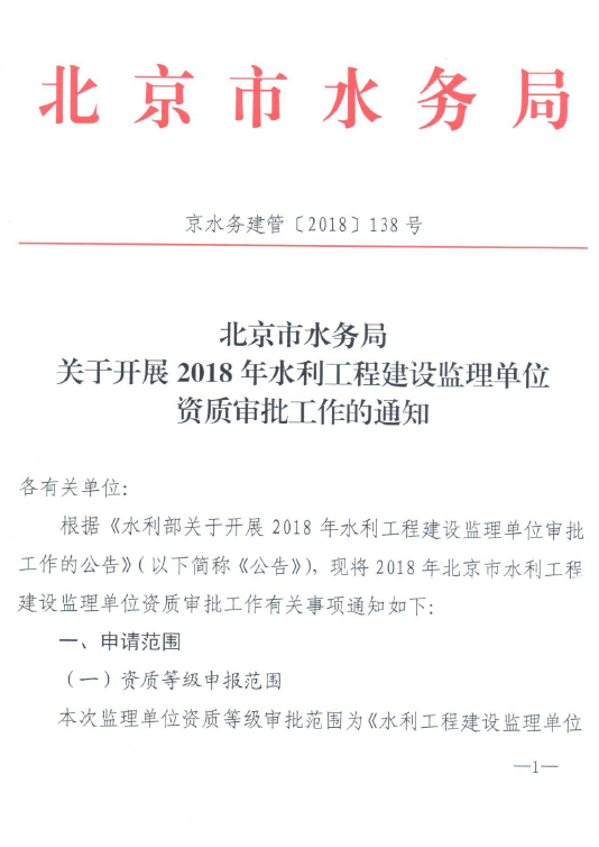 关于开展2018年水利工程建设监理单位资质审批工程的通知