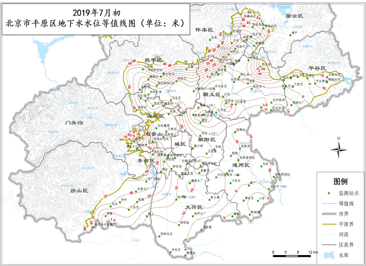 2019年7月1日,北京市平原区地下水埋深平均为23.49米,与上月同期比较,地下水位下降0.55米,地下水储量减少2.82亿立方米,与2019年1月1日比较,地下水位下降0.44米,地下水储量减少2.28亿立方米。