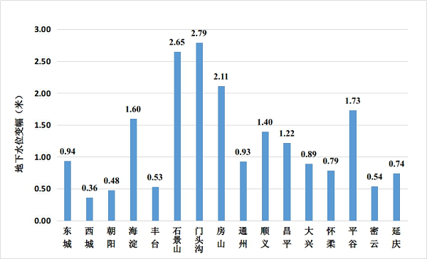 2023年8月17日,全市平原区地下水平均埋深为15.86米,与强降雨前(7月29日)相比,全市平原区地下水水位平均回升1.11米,地下水储量增加5.7亿立方米,全市16个区地下水水位普遍回升,其中门头沟区、石景山区和房山区回升较大。全市及各区地下水水位变化情况如下。