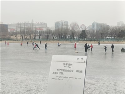 员明达建议市民到正规滑冰场或者市水务系统开放的5处冰场进行安全的冰上活动。5处冰场包括八一湖冰场、门城湖冰场、晓月湖冰场、莲石湖冰场和温榆河公园冰场。