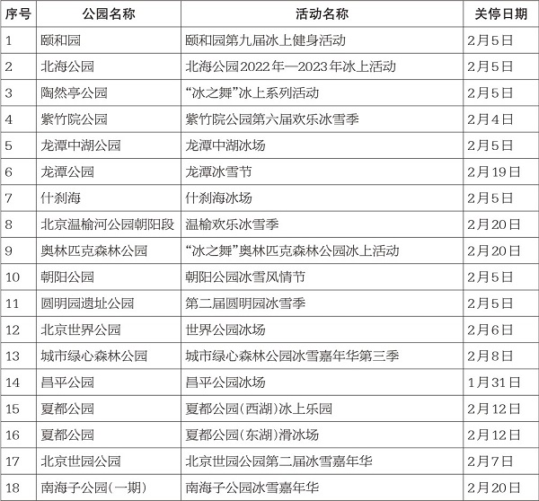 全市公园冰场关停日期一览表