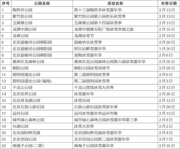全市公园雪场关停日期一览表