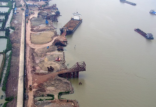 陕西省整治嘉陵江汉中市朱儿坝段河道堆砂前后照片