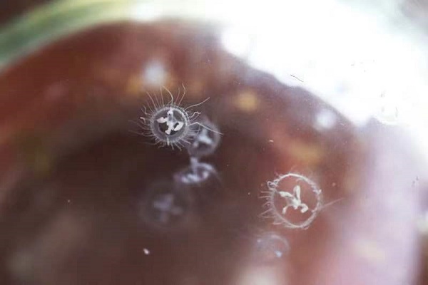 本站讯 “桃花水母分水螅型和水母型两种‘型态’,水螅型是它的‘童年’型态,呈树枝状,体型极小,很难被发现,对环境要求非常低,能吸附在水下或岩石缝里世世代代地‘蛰伏’。但是,‘桃花状’的水母型态,则对环境要求非常苛刻,水域必须相对安静、少波动,水质洁净、酸碱度适中,温度适合。”在怀柔水库西北部一隅“静水深流”处,市水文总站技术人员又发现了一小撮晶莹剔透的“小可爱”——桃花水母。湛碧的库水里,五、六只不过拇指大小的水母,状若桃花,悠然漂浮,纤细灵动。