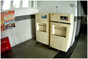 现场制、售饮用水机未安装尾水回收设施  景观环境用水使用自来水