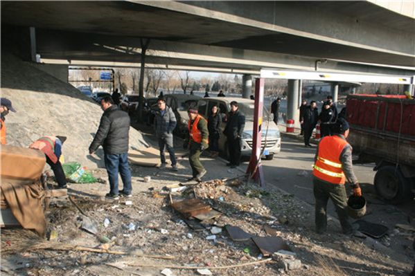 本站讯 1月23日下午,东水西调管理处与马连洼街道办事处、市水政监察大队二分队开展联合执法,对滞留在肖家河桥下滨河路北侧清河管理范围外的生活无着人员进行了清理。