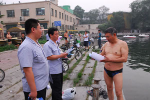 据悉,进入夏季以来,在城市河湖内游泳,周边捕捞、垂钓和非法洗车的违法现象愈演愈烈。市水政大队针对在城市河湖内非法游泳、垂钓、洗刷车这三种社会强烈关注的问题,市水政大队与城市管理综合行政执法局执法大队共同签定了《“城市河湖”专项执法“百日”联合整治工作方案》,依据《北京市城市河湖保护管理条例》,全力投入针对以上违法行为的专项治理工作。