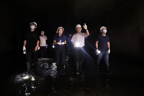 一行人首先抵达正义路与前三门大街路口一小区院内,头戴安全帽,脚穿高筒雨靴,手拿照明设备,从马道下至暗沟内,现场察看前三门盖板河内部情况,“探秘”北京中心城区“天上下雨地下流”的真实排水状态。随后,一行人抵达北京排水集团夕照寺排涝泵站,现场察看调蓄池与泵站情况,深入了解北京中心城区在遇极端暴雨天气时,如何通过紧急机制确保城市防洪排涝安全。