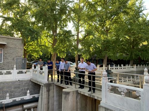 潘安君首先检查了内城水域水质及水面保洁情况,随后查看了玉带河清淤工作进度。潘局长强调,庆祝中华人民共和国成立70周年大会前夕,针对内城水域河湖处要高效处置调度来水,让内城水体活起来、净起来、美起来,日常管理中需重点关注玉带河水质变化,把握时间节点,加大工作力度,做到每日勤巡视,多观察,积极做好各项准备协调工作,全力保障庆祝中华人民共和国成立70周年大会期间内城河湖流域水环境安全。