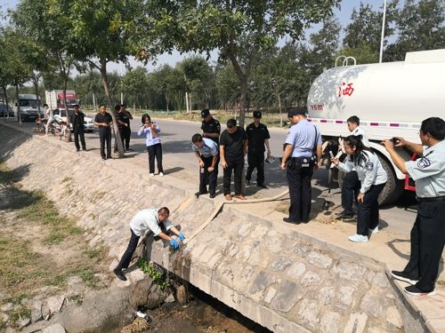 上午11时,通过多部门联合执法,朝阳区生态环境局、区水政执法大队顺利完成水体采样、问询等工作,并将嫌疑人及车辆等相关设施移送黑庄户派出所。目前,黑庄户派出所已对嫌疑人依法进行处理。