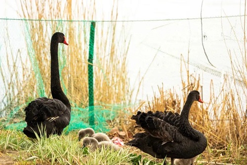 一个多月后,黑天鹅“夫妇”首胎5只小黑天鹅全部孵化成功。目前,黑天鹅家族已有10余位成员,分散在荷花湖与北湖各自范围安家落户,吸引了众多游客和摄影爱好者观赏。