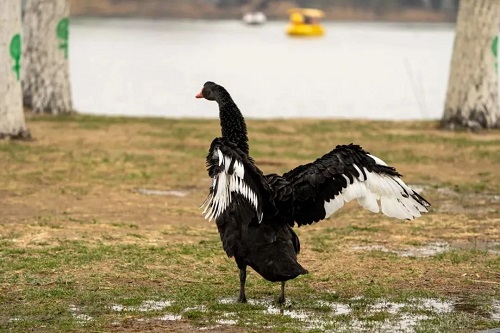 2022年4月,一对黑天鹅“夫妇”结伴来到朝阳公园,经过对周边环境的“勘察”,暂时落脚在北湖野鸭岛。为了让这对稀客在公园“安家落户”,朝阳公园工作人员专门在北湖野鸭岛上的生态浮岛上搭建了小窝,当作黑天鹅的“新房”,为其打造出安静独处的空间。当年9月,黑天鹅先后产下5枚蛋后,公园工作人员联系鹅饲养专家进行远程指导,购买饲料和新鲜的菜叶定期投喂“营养餐”,并在湖岸加装高清摄像头,实时密切监测黑天鹅的孵化情况,为黑天鹅宝宝的出生保驾护航。