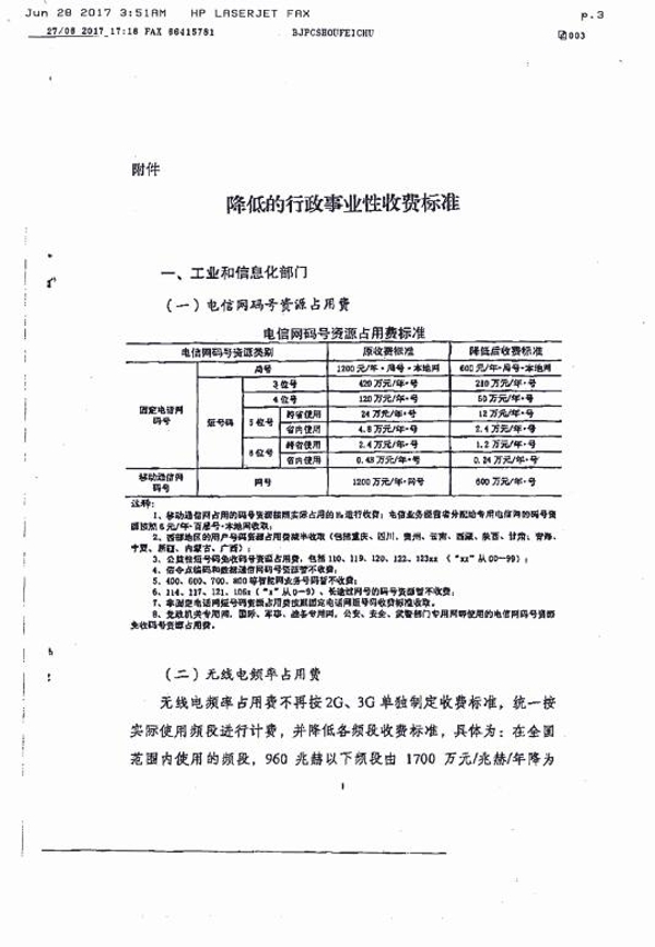 国家发展改革委 财政部关于降低电信网码号资源占用费等部分行政事业性收费标准的通知